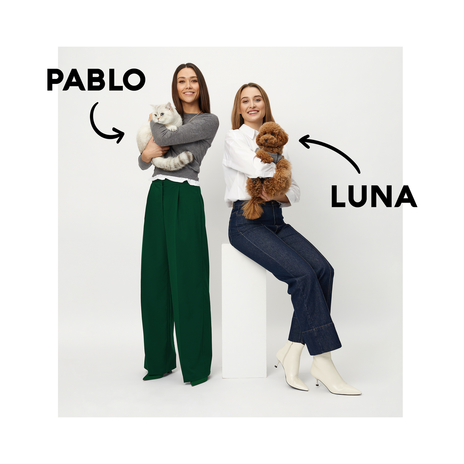 Pablo & Luna Studio, tai Gabijos ir Austėjos - dviejų sesių įkurta parduotuvė, kurios pagrindinė misija yra padaryti mūsų ypatingūjų draugų gyvenimą kuo džiugesnį ir spalvingesnį. Esame didžiulės gyvūnų mylėtojos ir atidaryti Pablo & Luna Studio mus įkvėpė asmeninės patirtys su mūsų pačių augintiniais - Pablo (Britų trumpaplaukis kačiukas) ir Luna (Toy Cockapoo šuniukas).